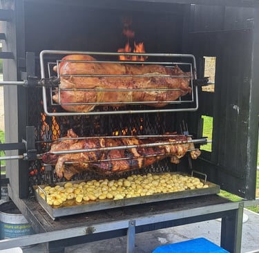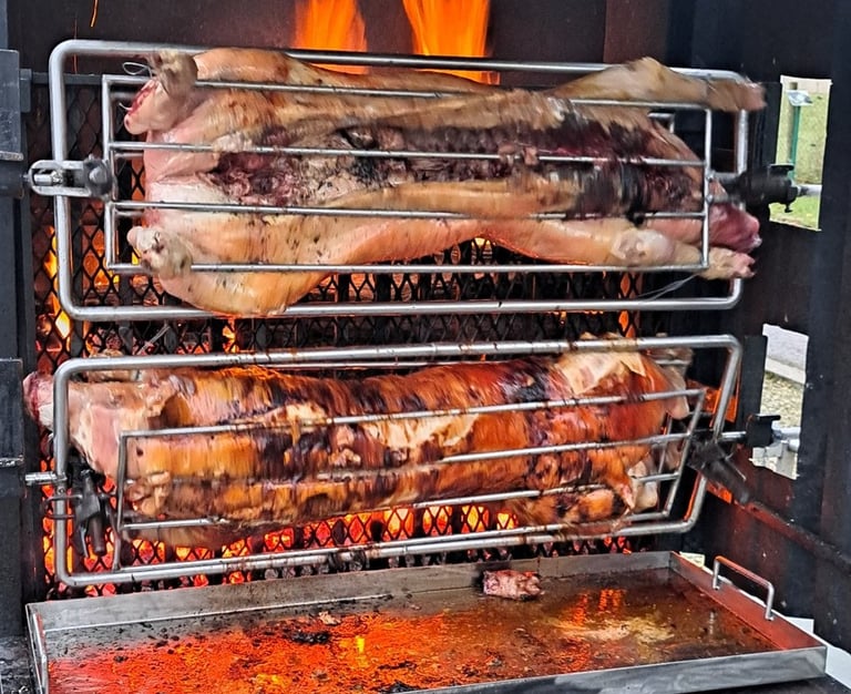 Repas pour 130 personnes jambons a la broche cuit au feux de bois un régal avec pommes de terre et sauce porto faite maison. Personnes très professionnelles je leurs met 5 étoiles hésitez pas a faire appel a eux .